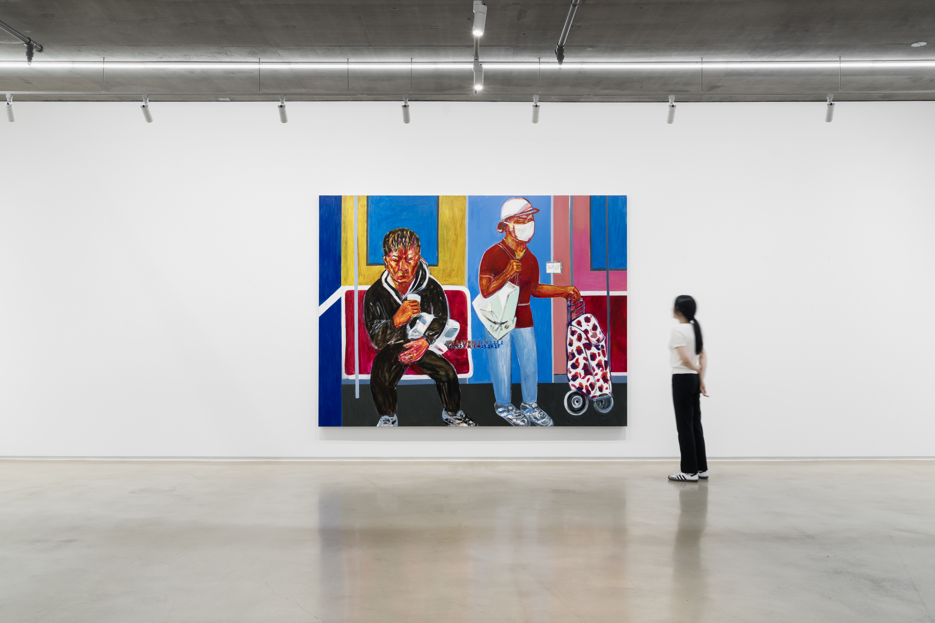이번 《도시와 사람들》 전시에서는 최근 몇 년간 메트로폴리탄의 대표 도시인 뉴욕을 오가며 새롭게 작업한 지하철 풍경과 거리의 인물들이 중심이 된다. 특히 뉴욕 지하철은 세계에서 가장 다양한 인종과 문화가 용광로처럼 섞여 있는 상징적 장소로, 서용선의 시선 아래 그곳의 사람들은 낯선 이방인이 아닌 우리 모두의 모습으로 그려진다. 무표정한 얼굴로 휴대폰을 들여다보는 군상, 대화를 나누는 사람들, 얼굴이 보이지 않을 만큼 고개를 숙인 인물 등 그의 화면 속 인물들은 단일한 초상이 아닌, 반복과 연결로 구성된 군집적 형상이며, 도시인이라는 보편적 존재로 제시된다.